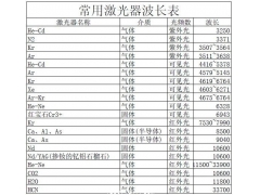 摘要:常用激光器有He-Cd、N2、Kr、Ar、He-Cd、Ar、Kr、Xe、Ar-Kr、He-Ne、紅寶石Cr3+、Kr;Ca、Al、As;Ca、As;Nd;Nd/YAG(摻釹的釔鋁石榴石);CO2;H2O;HCN等。 常用激光器有He-Cd、N2、Kr、Ar、He-Cd、Ar、...