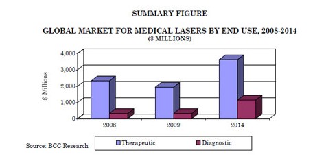 在激光醫療(medical laser)方麵,美國處於(yu) 世界領先地位。激光醫療設備不僅(jin) 在美國獲得廣泛應用,而且大量出口,據統計,美國全國2/3的門診機構已擁有激光醫療(medical laser)設備。日本激光醫學研究雖然比較活躍,但是從(cong) 日本光電子產(chan) 業(ye) 技術振興(xing) 協會(hui) 發表的統計數字來看,日本醫用激光裝置的總產(chan) 值約30億(yi) 日元,按目前美元對日元的比價(jia) 不足3000萬(wan) 美元,在日本光電子設備中所占份額是最小的。中國已成為(wei) 僅(jin) 次於(yu) 美國和日本的世界第三大醫療激光(medical laser)市場。