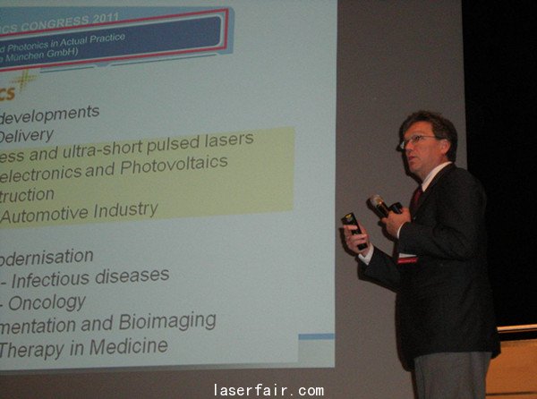 LASER World of PHOTONICS 2011於(yu) 2011年5月23日在德國新慕尼黑展覽中心隆重開幕!上午9:30在ICM會(hui) 議室召開的光電技術大會(hui) 的開幕式,座無虛席。現場展商的同台獻演,各個(ge) 論壇的同期召開,都營造了一個(ge) 高科技的學術氛圍。在這裏,您可以接觸世界領先的激光技術!現在,讓我們(men) 走進LASER World of PHOTONICS!