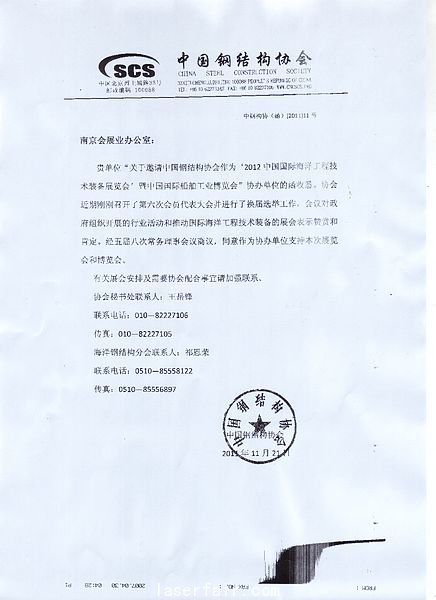 中國鋼結構協會(hui) 近期剛剛召開了第六次會(hui) 員代表大會(hui) 並進行了換屆選舉(ju) 工作,會(hui) 議對政府主辦的2012中國國際海洋工程技術裝備展覽會(hui) 及中國國際船舶工業(ye) 博覽會(hui) 表示讚賞和肯定,並將大力支持本次展會(hui) 。