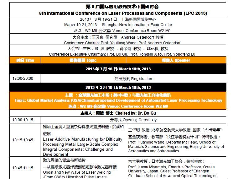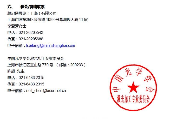 國際應用激光技術中國研討會(hui) 作為(wei) “光學技術大會(hui) (PHOTONICS CONGRESS CHINA)”的一部分,每年與(yu) 慕尼黑上海光博會(hui) (LASER World of PHOTONICS CHINA)同期舉(ju) 辦。