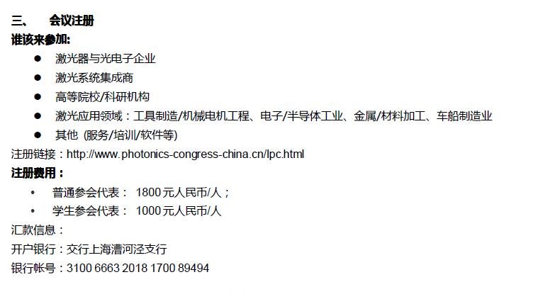 會(hui) 議主頁:https://www.photonics-congress-china.cn/lpc.html