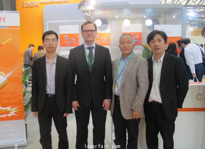 Oclaro全球銷售副總裁Gunner Stolze(左二)接受《激光製造商情》采訪,並合影留念