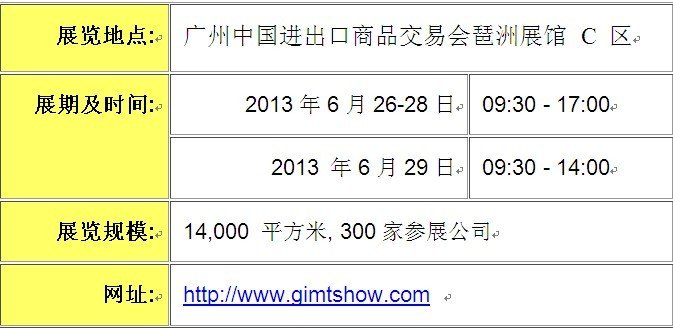 GIMT 2013(第四屆廣州國際機床及汽車加工裝備展)將於(yu) 6月26-29日假廣州中國進出口商品交易會(hui) 琵洲展館舉(ju) 行。招展工作正進行得如火如荼,大戶陸續落實參展。