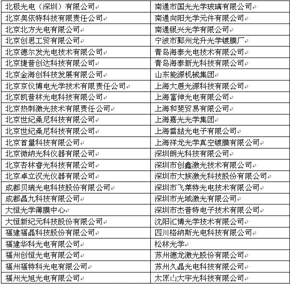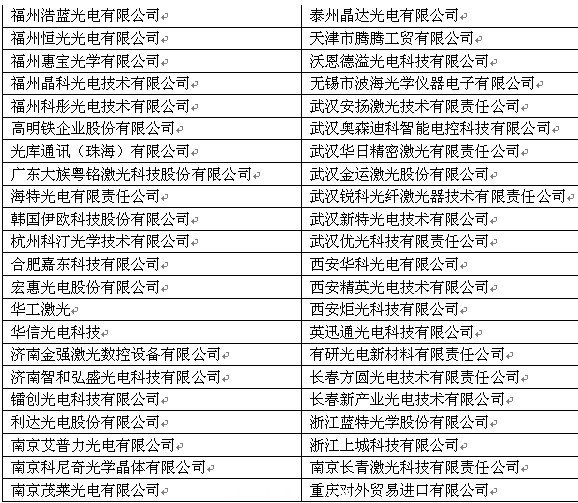 LASER World of PHOTONICS2013部分中國企業(ye) 名單: