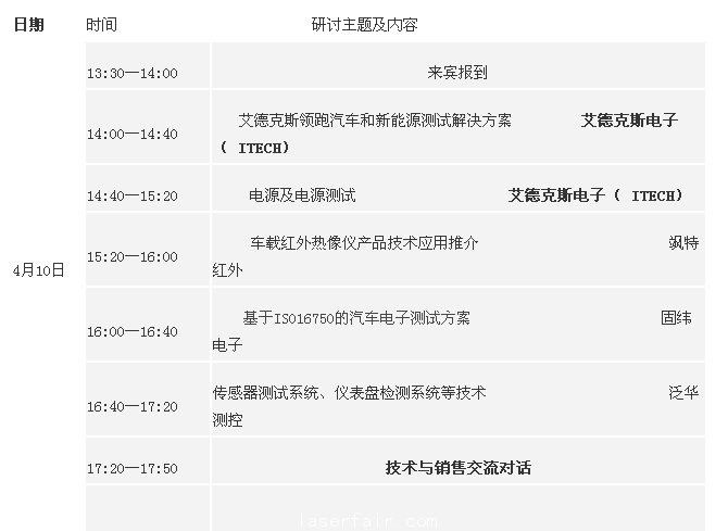 技術研討交流汽車電子測試企業(ye) :艾德克斯電子( ITECH)、固緯電子、颯特紅外、虹科電子、泛華測控等。