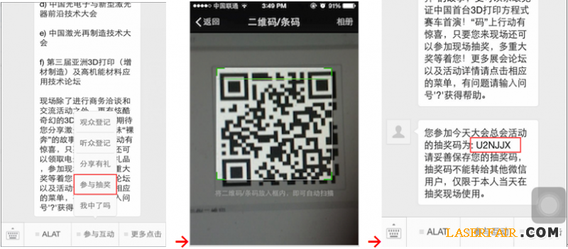 2015年5月7-9號,第九屆亞洲(深圳)激光先進製造展及激光應用技術論壇盛大召開,為答謝業界朋友多年來對亞洲激光製造展及激光論壇的深情厚愛,此次展會與往屆一樣設置了驚喜大抽獎,前來展會現場的朋友掃描二維碼均可參與抽獎,都有機會獲得ipads Air 2及現金大禮包等驚喜獎品,參與方式請參考以下活動詳情: