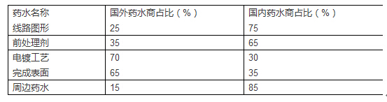在整個PCB藥水的市場,國內廠目前市場占比狀況如下: