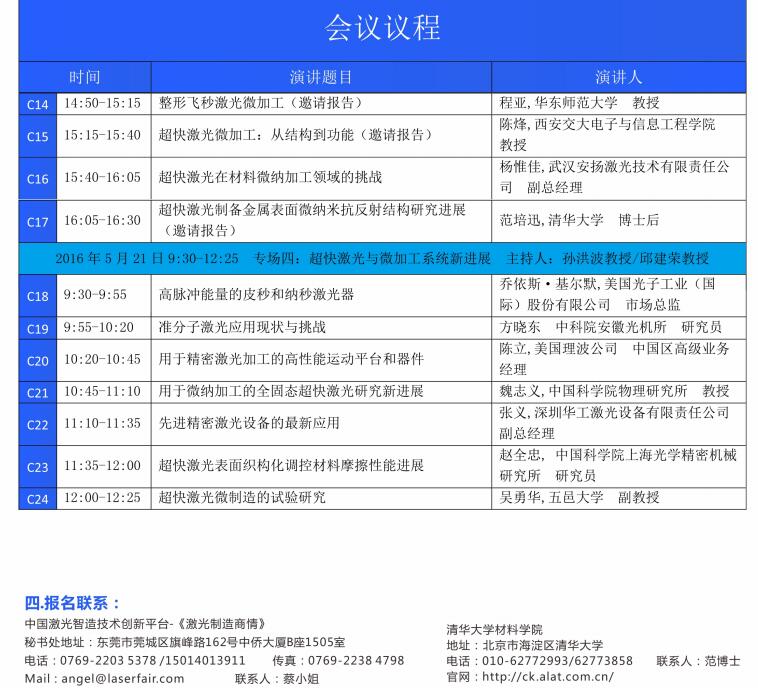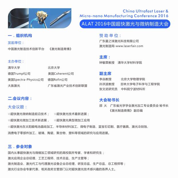 “ALAT 2016中國超快激光與微納製造大會”將包含4個主題:
