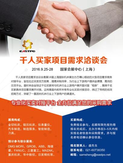 第18屆上海國際機床展(EASTPO 2016)將於(yu) 2016年9月25-28日在國家會(hui) 展中心(上海)舉(ju) 行。第18屆上海國際機床展主辦方打破傳(chuan) 統買(mai)