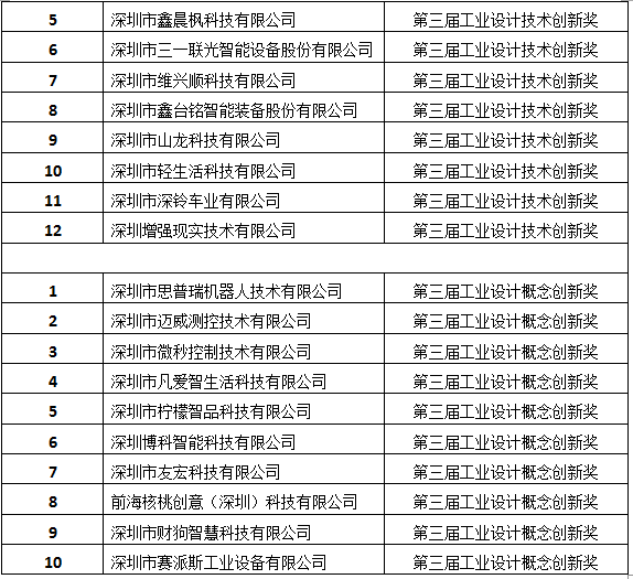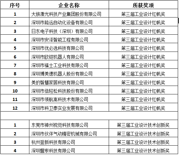 第三屆工業(ye) 設計紅帆獎獲獎企業(ye) 名單公示由深圳市電子裝備產(chan) 業(ye) 協會(hui) 、深圳市智能裝備產(chan) 業(ye) 協會(hui) 主辦,深圳市電裝工業(ye) 設計與(yu) 技術創新研
