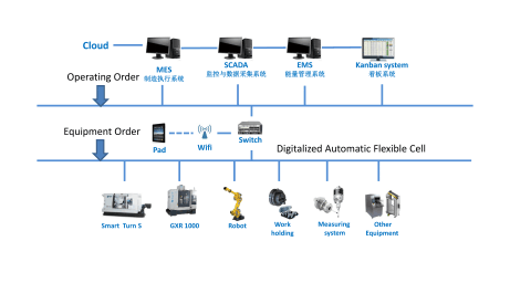 本次展會,哈挺為我們帶來了為中國製造廠商量身定製的柔性製造加工單元,最大程度上滿足不同企業在生產過程中的不同需求。可實現大/小行星架不同行星架零件的生產換型。哈挺參照工業4.0標準自主設計,由1台車銑複合加工中心Smart Turn S、1台立式加工中心GXR1000、1套機器人搬運係統和整套的工裝設備組成,由定製的MES係統連接和控製,完成整個柔性單元的信息聯通一體化。