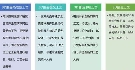 3D玻璃熱彎工藝起源於韓國,隨著以藍思為代表的玻璃加工企業的迅猛發展,相關工藝得以傳承並發揚光大。目前玻璃熱彎工藝存在四大難點暨熱彎機,研磨及拋光,3D曲麵印刷,3D貼合。