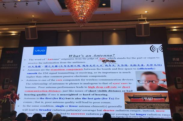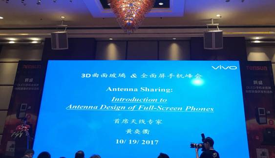 2017年10月19日,由中國通信工業協會3D曲麵玻璃分會/ 廣東省觸控及應用產業協會/ 中瑞會展/ 中新材會展在深圳所共同舉辦的“3D曲麵玻璃 & 全麵屏手機高峰會”上,vivo首席天線專家黃奐衢博士應邀針對《全麵屏手機天線設計簡介》進行演講。此次是黃奐衢博士繼今年9月23日同樣是在深圳舉行的一“手機全麵屏技術發展論壇”上領跑手機相關業界首次從整機係統設計角度發表《全麵屏手機天線設計簡介》的演說後,回響熱烈、佳評踴躍,黃博士再次受邀對此主題向全場超過740位的參會嘉賓進行演說。