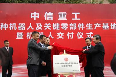 中共餘姚市委常委、中意寧波生態園管委會副主任韓柏順、中意寧波生態園管委會副主任、餘姚經濟開發區黨工委書記、千人計劃產業園管理中心黨組書記潘帥軼、中國機械工業聯合會、中國機器人產業聯盟副秘書長陳家良以及中信重工開誠智能裝備有限公司總經理陸文濤為基地揭牌