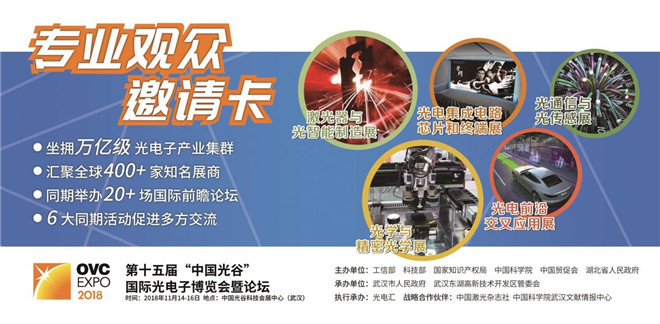 第十五屆“中國光穀”國際光電子博覽會(hui) 暨論壇將於(yu) 2018年11月14日至16日在武漢的中國光穀科技會(hui) 展中心舉(ju) 辦。
