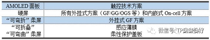 表2、AMOLED硬屏與(yu) 柔屏的觸控技術方案比較