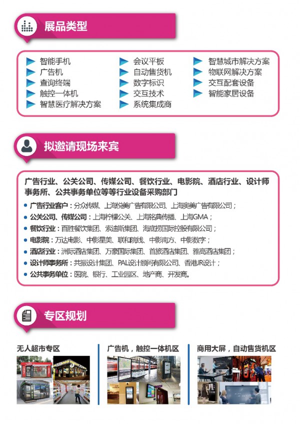 以及 “商業(ye) 空間智能交互展示區”,聯合各大顯示企業(ye) ,互聯網巨頭、交互終端企業(ye) 、公共顯企業(ye) 共同參與(yu) ,打造涵蓋無人新零售、自助交互、交互數字標牌等領域的交流展示平台。