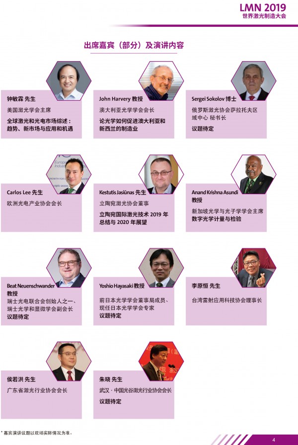 附:LMN2019世界激光製造大會(hui) 主會(hui) 場演講嘉賓(2019年5月8日-深圳會(hui) 展中心)(收費)