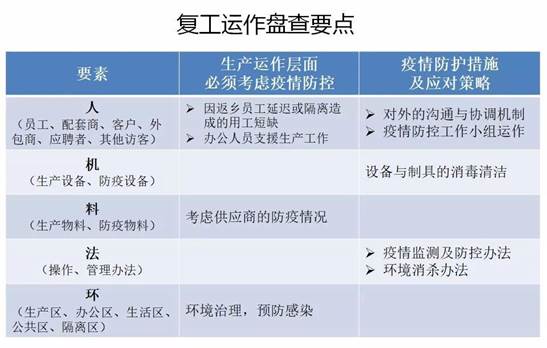 圍繞“人機料法環”等幾個(ge) 方麵,對生產(chan) 運作進行盤點,並製定相應的應對策略。