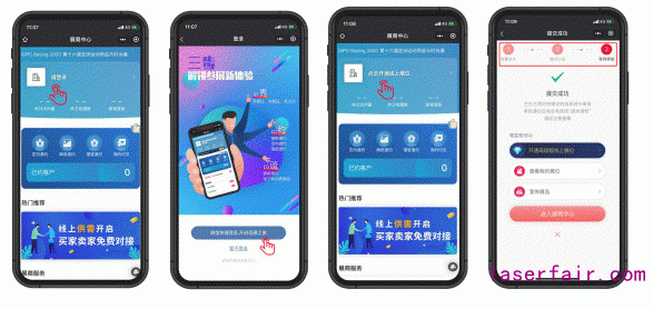 第一步:掃碼進入“展商中心”——點擊登錄,微信授權登錄——點擊開通線上展位