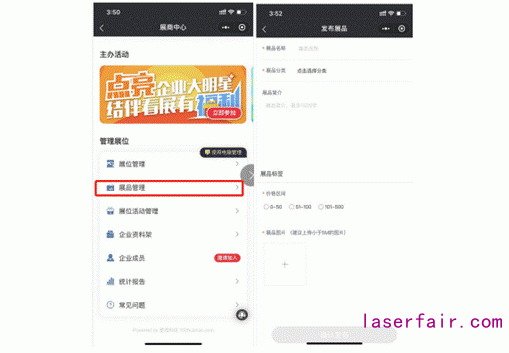 ▼展品管理主要是發布展品的地方,基礎版可發布3個(ge) 展品;