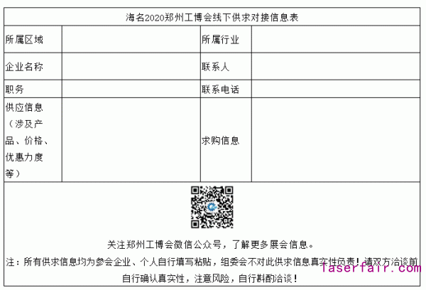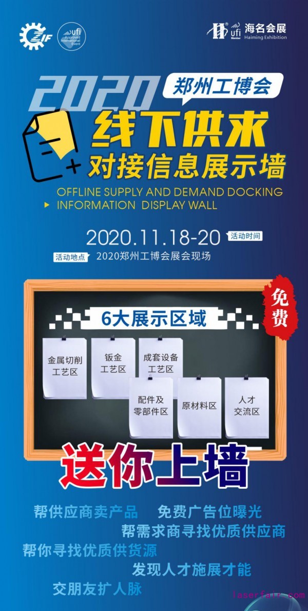 鄭州工博會(hui) 組委會(hui) 將在2020年展會(hui) 現場免費提供自主供求對接展示牆,所有到會(hui) 參觀的企業(ye) 均可在觀眾(zhong) 換證處免費領取供求對接信息表,並粘貼至現場供求展示牆,保證企業(ye) 更大的收益,為(wei) 中西部企業(ye) 供需對接提供更便捷的服務!海名鄭州工博會(hui) 讓供求對接更便捷!