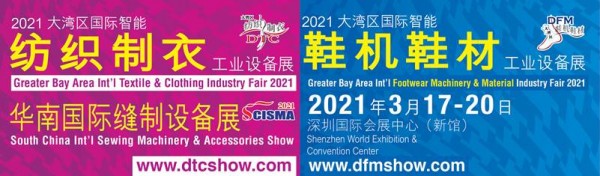 2021年3月17-20日,由訊通展覽公司、廣東(dong) 省縫製設備商會(hui) 主辦,廣東(dong) 省鞋機協會(hui) 協辦的“2021大灣區國際智能紡織製衣、鞋機鞋材工業(ye) 設備展”(以下簡稱“2021DTC&DFM展”)、“華南國際縫製設備展(以下簡稱SCISMA展)”將在深圳國際會(hui) 展中心17號館舉(ju) 行。當前,北方地區部分城市出現局部疫情,相比之下,華南地區疫情防控情況則較為(wei) 穩定,加之各級防疫部門已累積豐(feng) 富的疫情應急經驗,相信在疫情常態化的今天,2021DTC&DFM展、SCISMA展能夠穩定有序進行。