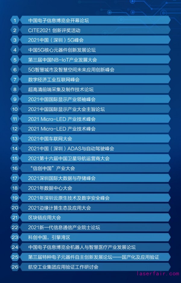 CITE2021以創新發展理念為(wei) 引領,以技術創新為(wei) 驅動,以信息網絡為(wei) 基礎,麵向高質量發展需要,將集中展示包括智慧家庭、智能終端、人工智能、智能製造、集成電路、超高清顯示、大數據存儲(chu) 、智能網聯汽車、5G和物聯網、電子競技等代表電子信息產(chan) 業(ye) 未來發展的核心內(nei) 容,展館規模達102500平方米。通過CITE主題館、超高清顯示館、智能製造與(yu) 3D打印館、前沿科技應用館、電子競技館、大數據存儲(chu) 館、物聯網與(yu) 5G應用館、智能駕駛及汽車技術館、基礎電子館等九大展館20個(ge) 專(zhuan) 業(ye) 展區,共同為(wei) 業(ye) 界充分展示智能時代電子信息產(chan) 業(ye) 最新發展成果與(yu) 趨勢,打造國際化一流電子信息領域展示平台。展會(hui) 期間還將舉(ju) 辦50餘(yu) 場技術峰會(hui) 和主題論壇,內(nei) 容涵蓋5G、物聯網、信創產(chan) 業(ye) 、車聯網、大數據與(yu) 存儲(chu) 、智能製造、機器人與(yu) 智慧醫療、智慧城市、特種電子元器件、光電顯示等前沿熱點話題。論壇將邀請業(ye) 內(nei) 專(zhuan) 家與(yu) 重量級嘉賓參與(yu) ,解讀全球前沿趨勢和技術發展,助力電子信息產(chan) 業(ye) 高質量發展。