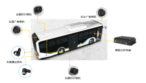 ① 第一個(ge) 產(chan) 品方案的特點是通過視頻和雷達技術融合,智能監測公交車車頭、車左右兩(liang) 側(ce) 、車尾的行人、機動車、非機動車等目標,識別碰撞風險,分級報警,及時提醒司機,謹慎駕駛,減少事故風險。該係統具有全天候,全盲區智能分析能力,公交車實際應用也是行業(ye) 首例。
