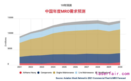 據航空媒體(ti) Aviation Week發布的一項報告稱,預計到 2022年,中國航空維修市場規模將接近100億(yi) 美元,年複合增長率達8.6%,高於(yu) 全球平均水平。未來十年,受益於(yu) 市場上新機型、新發動機和新部件的產(chan) 生,和老舊破損飛機和發動機的替換需求,全球航空維修市場仍蘊藏巨大商機。