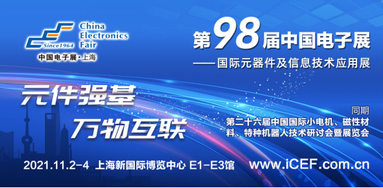 即將於(yu) 11月2-4日在上海舉(ju) 行的第98屆中國電子展——國際元器件暨信息技術應用展,將以“元件強基 萬(wan) 物互聯”為(wei) 主題,以基礎電子元器件、集成電路為(wei) 技術牽引,拓展5G與(yu) 物聯網、汽車電子、防務電子、工業(ye) 電子、消費電子、醫療電子六大的創新應用板塊,同期舉(ju) 辦第二十六屆中國國際小電機、磁性材料、特種機器人技術研討會(hui) 暨展覽會(hui) ,以優(you) 質展會(hui) 的形式繼續與(yu) 觀眾(zhong) 見麵,助力我國電子元器件產(chan) 業(ye) 實現高質量發展,展示電子元器件大國風采。