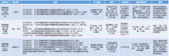 國內(nei) 國家級智能網聯測試基地政策、開放時間等對比(部分)