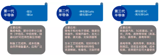 第三代半導體(ti) 材料的禁帶寬度是第一代和第二代半導體(ti) 禁帶寬度的近3倍,在高溫、高壓、高功率和高頻領域將替代前兩(liang) 代半導體(ti) 材料。
