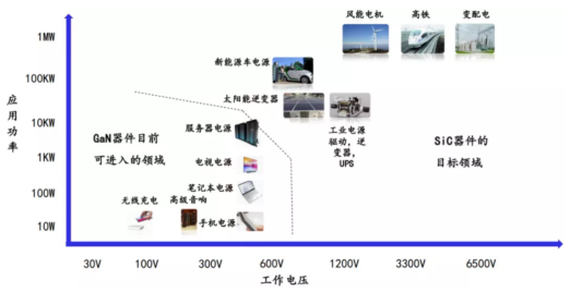 氮化镓GaN已在消費電子率先突破,中高壓領域或後來居上:采用GaN-on-Si的功率器件工作電壓在1000V以下,成本在1美金左右。氮化镓GaN功率器件在低壓領域(0-900V)率先商用,替代傳(chuan) 統的矽基功率器件。更有實驗室宣布最新工作電壓可達1200V的矽基GaN外延片,如若該技術商業(ye) 化順利,1000V以上中高壓領域,矽基GaN也有可能獲得一部分市場份額。