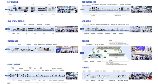 CMM 展整線真機展示無人化車間 ,業(ye) 界最完整,規模最大,設備最多,技術最新,融合自動化線插件(DIP)、測試自動化線、前置加工線、組裝自動化線、組裝測試自動化線、成品包裝線、智能倉(cang) 儲(chu) 、主板測試等主題自動化展示區。