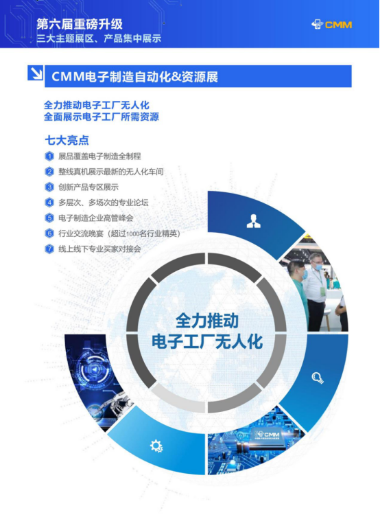 CMM展初心不改,全力推動電子工廠無人化,全麵展示電子工廠所需資源,聚焦新產(chan) 品、新技術、新材料、新方案、新模式。2022年5月東(dong) 莞,我們(men) 不見不散。