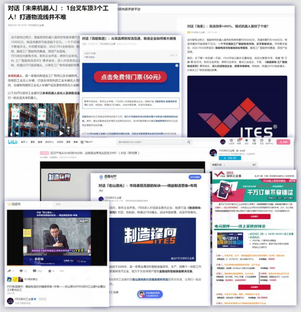 傳(chuan) 遞市場訊息,提高觀眾(zhong) 粘性,ITES堅持自主創造優(you) 質內(nei) 容,專(zhuan) 業(ye) 打造《製造鋒向》、《走進工廠》、《聰明的工廠》等多維度特別欄目,並通過圖文、視頻等豐(feng) 富形態在視頻號、百度、今日頭條、騰訊、B站等自媒體(ti) 平台發布,持續擴大品牌影響力,為(wei) 參展企業(ye) 及觀眾(zhong) 帶來一手資訊,捕捉行業(ye) 先機。