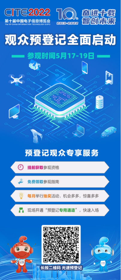 第十屆中國電子信息博覽會(hui) (CITE2022)將重點展示智慧家庭、智能終端、5G、人工智能、物聯網、IC設計、超高清視頻、3D玻璃蓋板、半導體(ti) 顯示屏、AR/VR、AI+數字孿生、機器人、大數據與(yu) 存儲(chu) 、傳(chuan) 感器、消費電子、跨境生態、汽車半導體(ti) 、無人車、自動駕駛、車聯網、燃料電池、充電技術、工業(ye) 互聯網、信息技術應用創新產(chan) 、基礎元器件、特種元器件等熱門專(zhuan) 業(ye) ,展覽麵積超過10萬(wan) 平方米,將有全球 1800 家展商參展,超過 10 萬(wan) 名專(zhuan) 業(ye) 人士參與(yu) 。同期還將舉(ju) 辦100餘(yu) 場高峰主題論壇,通過主題研討、技術交流、征集評選、新品發布等係列活動,助推中國電子信息產(chan) 業(ye) 的蓬勃發展。