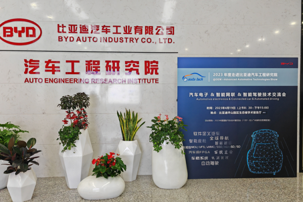 2023年4月19日,AUTO TECH 中國國際汽車技術展覽會(hui) 組委會(hui) 組織十家合作夥(huo) 伴走進比亞(ya) 迪汽車工業(ye) 有限公司汽車工程研究院參加“比亞(ya) 迪--汽車前瞻技術交流會(hui) ”,交流範圍涉及多個(ge) 領域如汽車芯片、智能駕駛、新能源汽車技術、智能網聯、智能座艙等話題,現場氛圍熱烈,交流會(hui) 成功舉(ju) 辦!