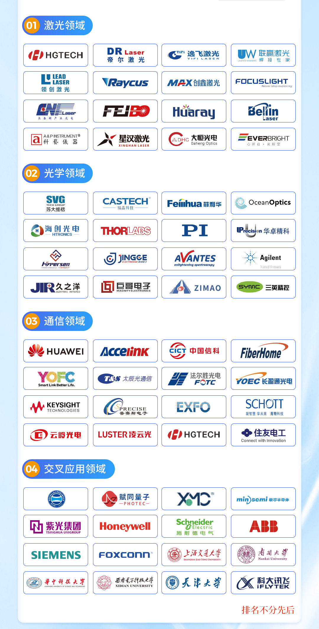 本屆展會(hui) 上,各大參展企業(ye) 將攜在新應用領域的創新解決(jue) 方案、最新光電產(chan) 品、一站式激光加工解決(jue) 方案、光電子元器件、光學晶體(ti) 材料、光學儀(yi) 器設備、鏡頭及模組、鍍膜、光纖及設備、光模塊、光芯片、新型顯示、光電傳(chuan) 感、F5G全光網絡等光學全產(chan) 業(ye) 鏈的科技新品和重磅產(chan) 品亮相現場,讓你一飽眼福。