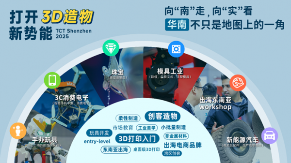 與(yu) TCT亞(ya) 洲展不同,TCT深圳展將立足粵港澳大灣區,輻射華南、西南及東(dong) 南亞(ya) 市場,集中關(guan) 注消費電子、模具製造、珠寶首飾以及牙科醫療行業(ye) ,為(wei) 這些行業(ye) 提供包括原型件製作、複雜構件一次成型和定製化產(chan) 品。