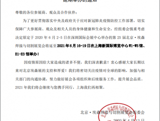 關於第 25 屆 北京·埃森焊接與切割展覽會 延期舉辦的通知